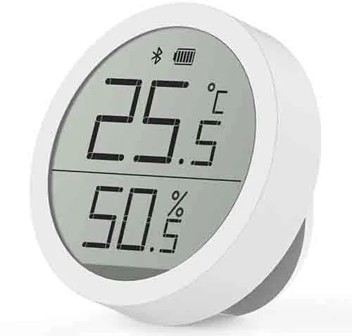 Cleargrass (Qingping): hygro thermometer, round body, e-ink display.